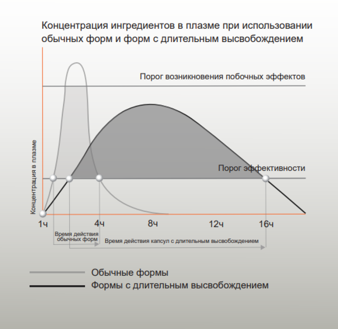 Капсулы с длительным высвобождением позволяют избежать возможных пиковых концентраций и обеспечивают максимальный уровень безопасности.